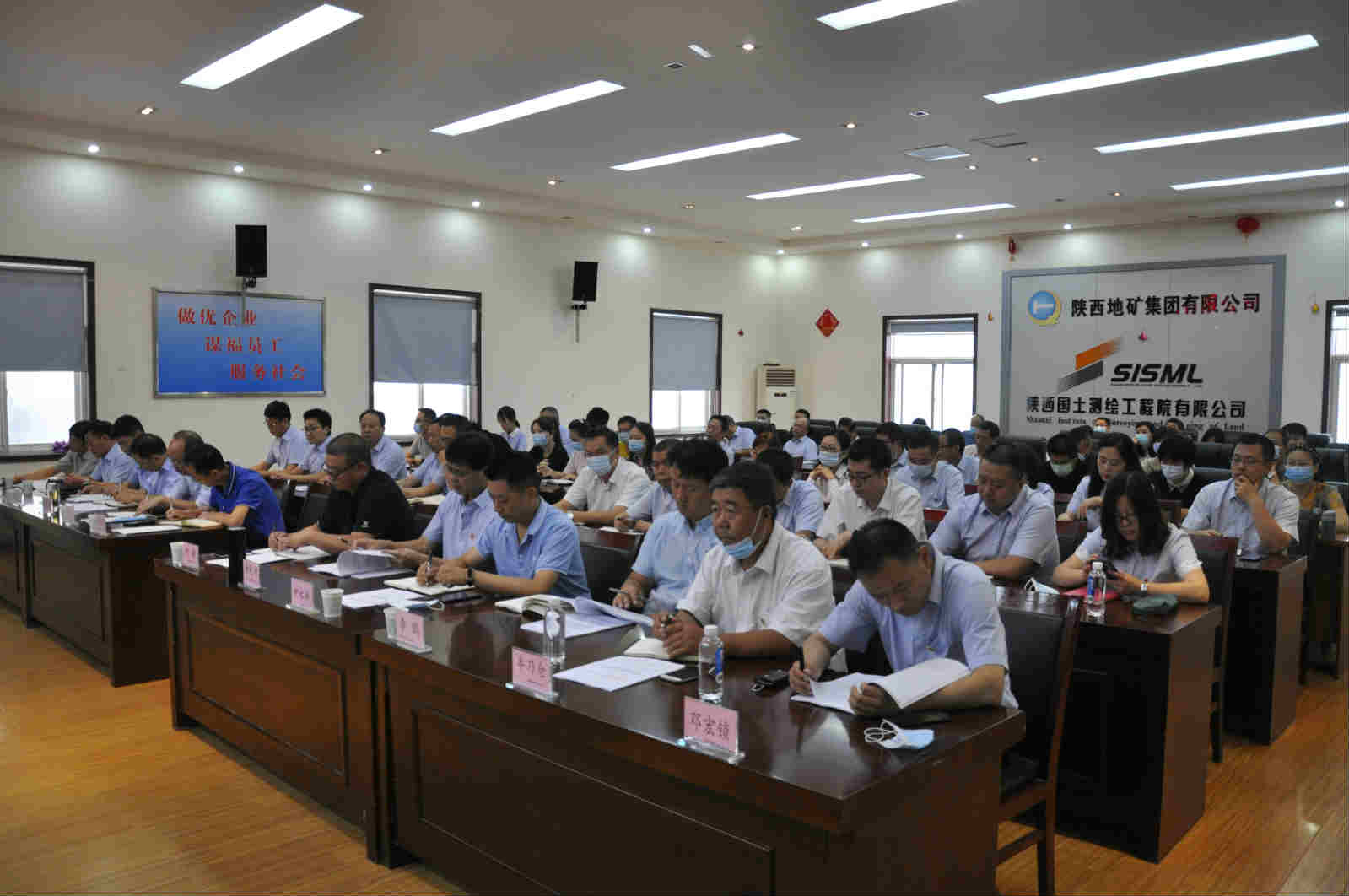 参加会议的有秦地公司、实验研究所、地质工程公司、工贸公司、环宇矿业公司、国土测绘工程院六个单位的班子成员及中层干部共计80余人。