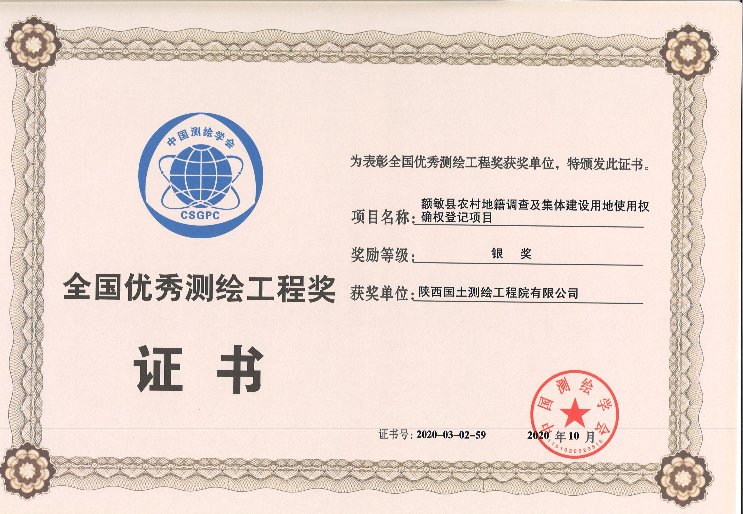2020年全国优秀测绘工程奖银奖(额敏县农村地籍调查及集体建设用地使用权确权登记)
