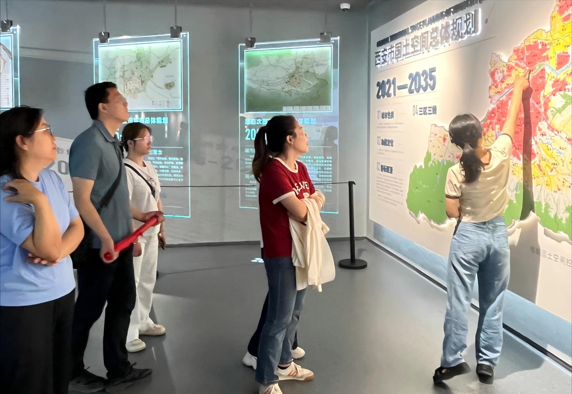 在讲解员的引导下,团员青年们重点参观了“城市总体规划”“民生工程”等展区,深入了解西安“一核三轴多中心”的发展格局,深化国土空间规划项目实践认知,强化团队专业素养,为公司推进的地信、规划、土地整治等相关项目积累了宝贵经验。
