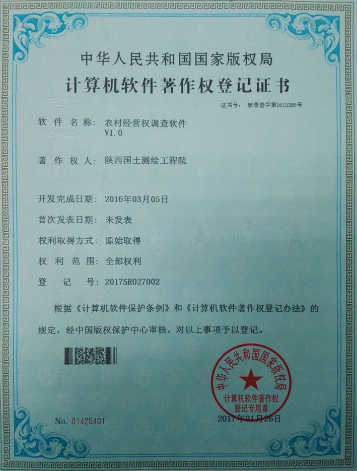 此次申请著作权的软件包括,不动产调查软件、水准测量数据处理系统、集体土地承包经营权调查三大软件获。