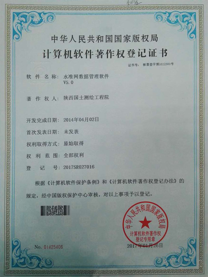 云博体育中国官方网站,自2016年10月,启动了自主开发的计算机软件著作权登记工作,清理了近三年来测绘院自主开发的软件项目。2016年11月向国家版权局送报申请,通过了国家版权局审核、公示等程序。国家版权局于2017年2月向测绘院颁发了著作权登记证书。